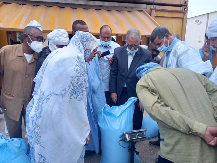 وعاينت مفوضة الأمن الغذائي فاطمة بنت خطري، عملية تفريغ الشحنة من الباخرة في ميناء نواكشوط كما أشرفت في مخازن المفوضية الخاصة بالأسمدة في الميناء على عملية تعبئة السماد في أكياس خاصة ونقلها مباشرة الى روصو ووضعها في متناول المزارعين.