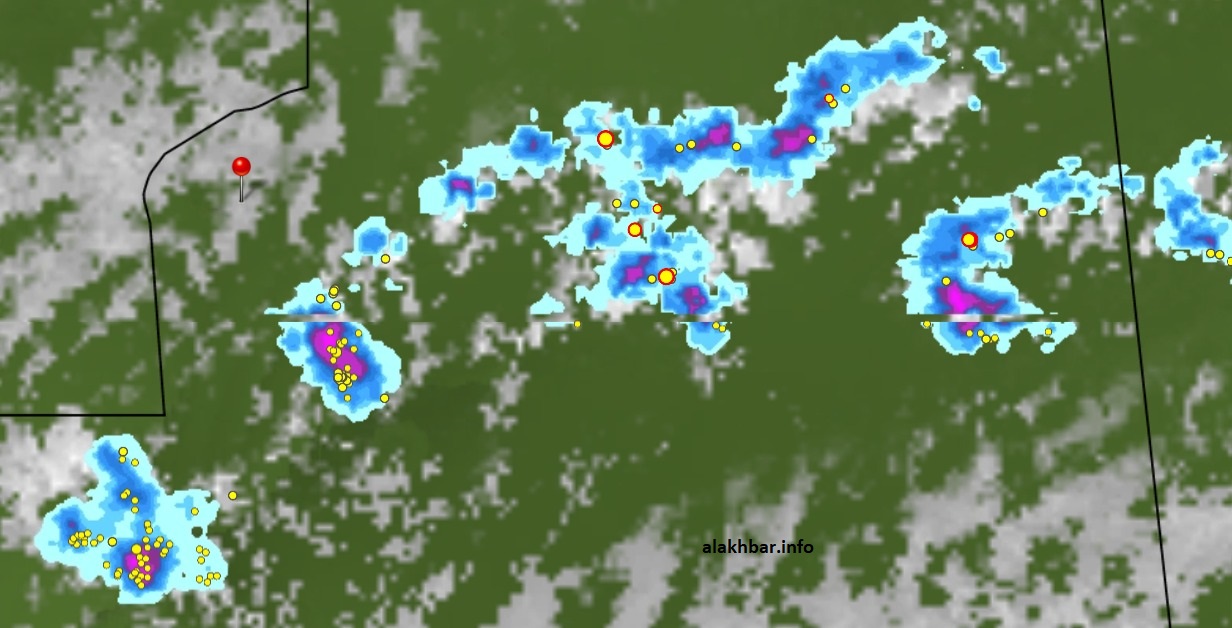 كما يتوقع أن تزداد كثافة وانتشارا خلال الساعات القادمة، وأن تتحرك باتجاه الجنوب الغربي لتؤدي بحول الله تعالى إلى تهاطل أمطار معتبرة على جنوب تيرس الزمور ومناطق واسعة من آدرار، ومنطقة تقاطع الولايات الثلاث طيلة مساء اليوم.