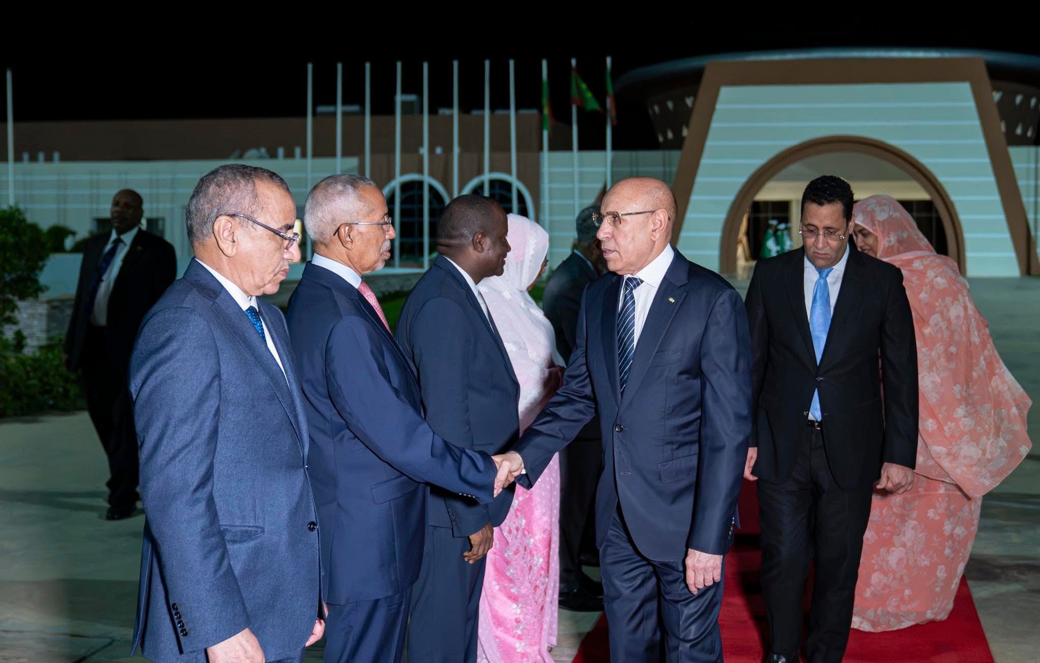 وودع فخامة رئيس الجمهورية بمطار نواكشوط الدولي أم التونسي من طرف معالي الوزير الأول السيد المختار ولد أجاي، والوزير الأمين العام لرئاسة الجمهورية السيد مولاي ولد محمد لغظف، والوزيرين المستشارين برئاسة الجمهورية السيد محمد محمود ولد الشيخ عبدالله بن بيه، والسيدة عيساتا با يحيى، ووزير العدل السيد محمد ولد اسويدات، ووزير الدفاع وشؤون المتقاعدين وأولاد الشهداء السيد حنن ولد سيدي، ووزير الداخلية وترقية اللامركزية والتنمية المحلية السيد محمد احمد ولد محمد الأمين، وقائد الأركان الخاصة لرئيس الجمهورية الفريق محمد المختار الشيخ مني، والمديرة المساعدة لديوان رئيس الجمهورية السيدة غانديغا فاتيماتا، ووالي نواكشوط الغربية السيد امربيه ربو ولد بونن ولد عابدين، ورئيسة جهة نواكشوط السيدة فاطمة بنت عبد المالك.