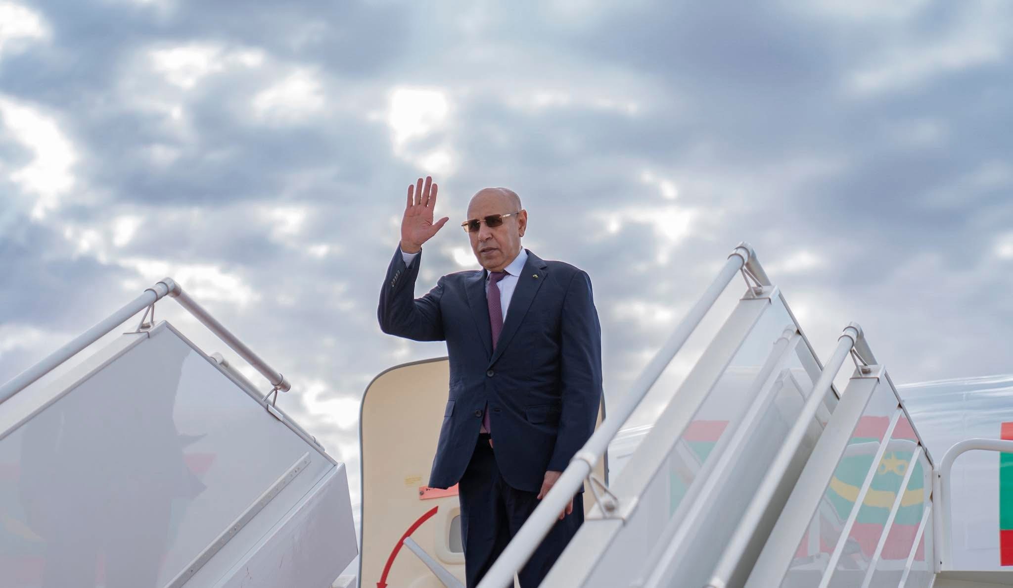 وودع فخامة رئيس الجمهورية بمطار نواكشوط الدولي أم التونسي من طرف معالي الوزير الأول السيد المختار ولد أجاي، ومعالي الوزير الأمين العام لرئاسة الجمهورية السيد مولاي ولد محمد لغظف، ومعالي الوزيرين المستشارين برئاسة الجمهورية السيد محمد محمود ولد الشيخ عبدالله بن بيه والسيدة عيساتا با يحيى، ومعالي وزير العدل السيد محمد ولد اسويدات، ومعالي وزير الشؤون الخارجية والتعاون الإفريقي والموريتانيين في الخارج السيد محمد سالم ولد مرزوك، ومعالي وزير الداخلية وترقية اللامركزية والتنمية المحلية السيد محمد احمد ولد محمد الأمين، وقائد الأركان الخاصة لرئيس الجمهورية الفريق محمد المختار الشيخ آمني، والمديرة المساعدة لديوان رئيس الجمهورية السيدة غانديغا فاتيماتا، ووالي نواكشوط الغربية السيد امربيه ربو ولد بونن ولد عابدين، ورئيسة جهة نواكشوط السيدة فاطمة بنت عبد المالك.