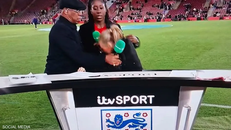 وسارع المحللان إيان رايت وأنيتا أسانتي للإمساك بها، وهي على وشك السقوط.