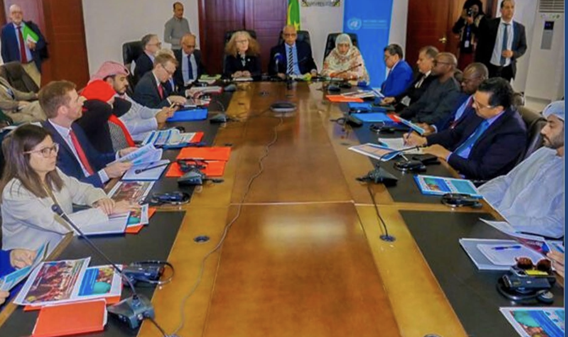 عقد معالي وزير الشؤون الاقتصادية والتنمية، السيد عبد الله سليمان الشيخ سيديا، اليوم الثلاثاء بمقر الوزارة في نواكشوط، اجتماعا رفيع المستوى مع شركاء التنمية خُصص لعرض خطة الطوارئ للاجئين لسنة 2026 واستعراض نتائج خطة العام المنصرم، وذلك بحضور معالي مفوضة الأمن الغذائي السيدة فاطمة بنت محفوظ ولد خطري.