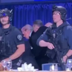 وفي داخل القاعة، نقل الحضور من الطاولة الرئيسية، بمن فيهم ترامب، إلى أسفل القاعة، بينما كان رجال الأمن يعملون على تحديد ما إذا كانت هناك أي تهديدات إضافية.